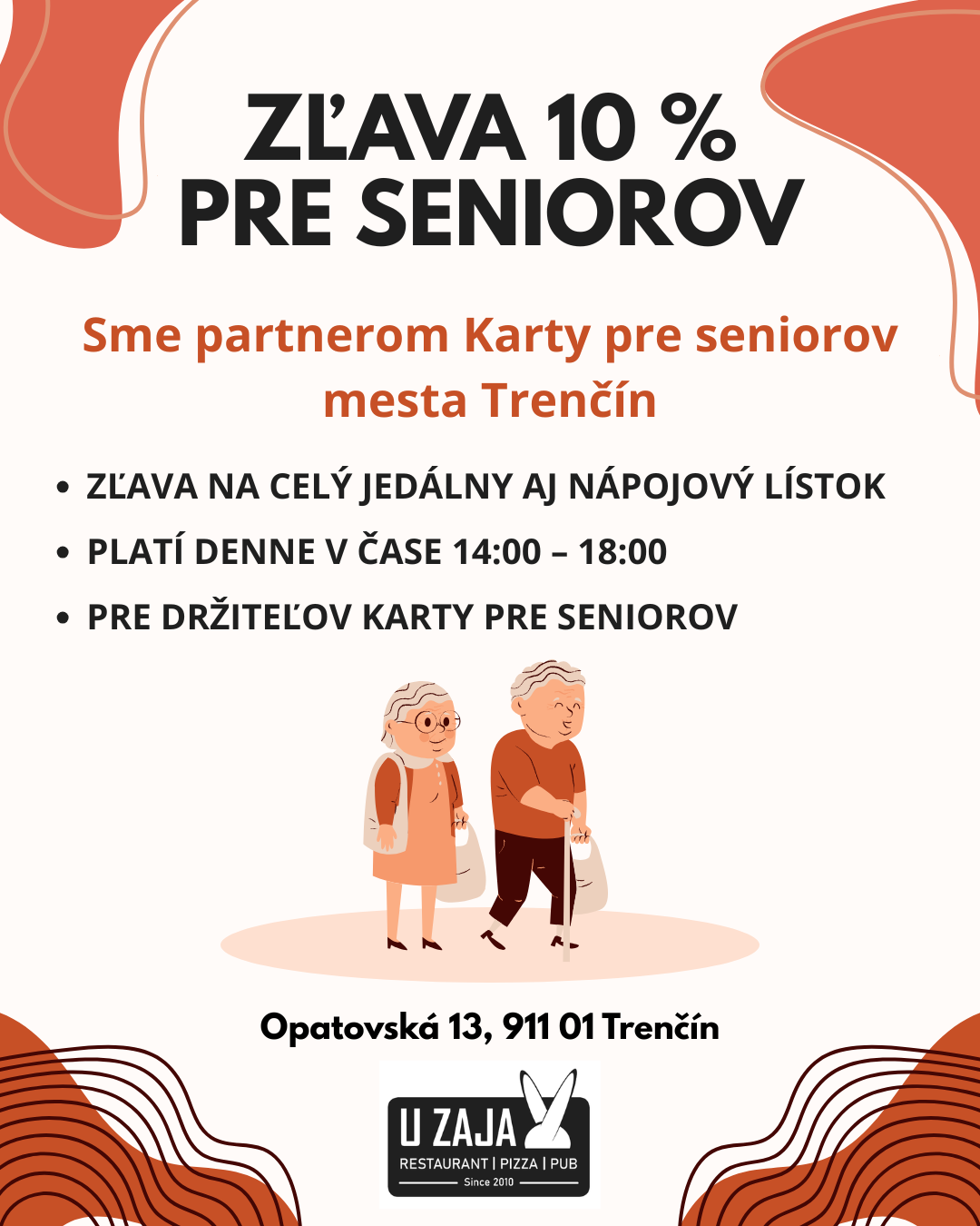 Reštaurácia " U Zaja " je podnik, nachádzajúci sa v Trenčíne v mestskej časti Sihoť na Opatovskej ulici č.13. Reštaurácia ponúka svojím zákazníkom jedlá tradičnej slovenskej kuchyne, ako aj rôzne špeciality a chuťovky. Každý pracovný deň je v ponuke denné menu pozostávajúce z dvoch polievok, troch hlavných jedál a gurmán menu. Rovnako ponúkame víkendové menu, hamburgery, pizzu.